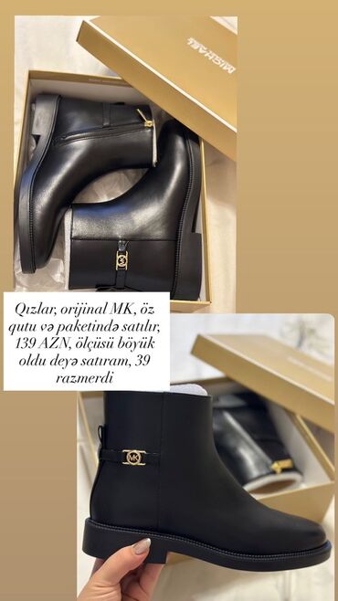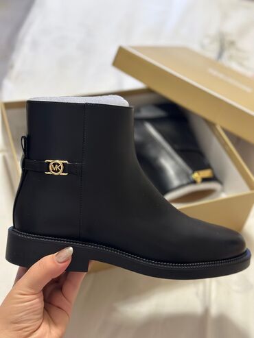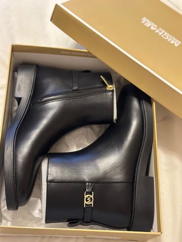 Michael Kors qadın çəkmələri - Model: Dəri qısa çəkmə, MK loqolu - Rəng: Qara - Material: Üstü – təbii dəri; içlik – tekstil; altlıq – dəri (ikonlardan göründüyü kimi) - Ölçü: 8M təxmini 38 - Diza...