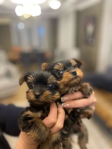 Mikro Yorkshire Terrier balası 1 erkek 1 dişi bala var 52 ginlükdüler, 400 qram çekileri var, pasport var max çekileri 1.5-2 kq, standart mini ile sehv salmayın, isteyen istediyi yerde aparıb yoxla...