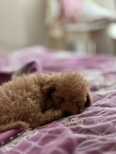 Toy Poodle balası qiymət özü ele qoyulub 350 azn son qiymetdir 7 aylıq erkekdir - Cins: Toy Poodle (orta ölçü) - Rəng: Açıq krem/qızılı - Xüsusiyyətlər: Hipoallergen tüklü, az tük tökür, qıvrım yu...