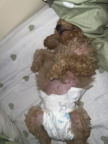 Poodle,karlik,2yasi var.Tecili cütlesdirmek lazimdir.bej rengdir.Balalari hemise saglam dogulub.Bej,sari,tünd bej balalarinin rengidir.Özünün saglamliq barade problemi yoxdur.