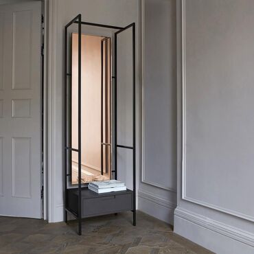 - Ölçü təsviri (təxmini): tam hündürlüklü güzgü; dörd nazik ayaq üzərində dayanan konstruksiya, yerə az iz qoyur