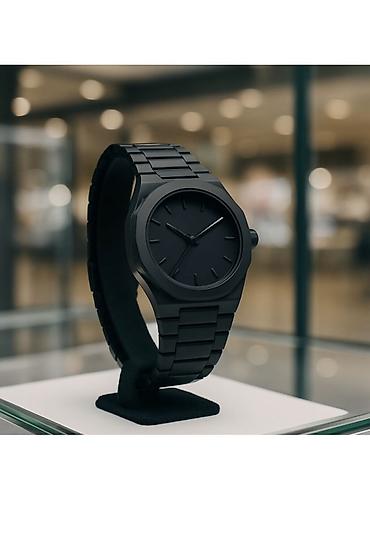 Kvars mexanizmalı kişi qol saatı – Dexin brendi. - Korpus və qolbaq: metal, tünd rəngli parlaq örtük - Siferblat: qara, Roma rəqəmləri (XII, III, VI, IX) və markerlər - Göstəricilər: saat, dəqiqə, ...