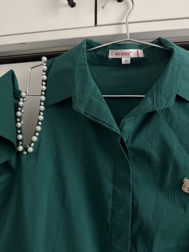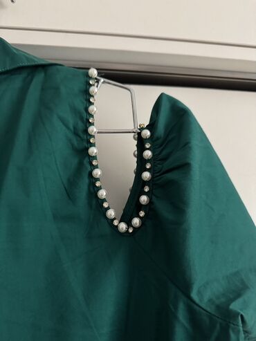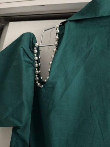 ZARA qadın köynəyi - Rəng: zümrüd yaşılı - Parça: atlas effekti verən, yüngül və parlaq toxuma - Model: klassik yaxalıq, gizli düyməli ön bənd - Qol: uzun qol, enli manjet - Kəsim: rahat/oversize ...