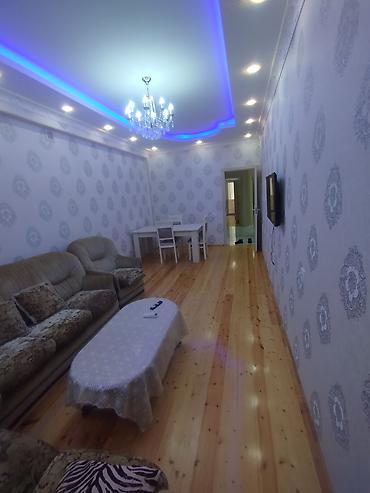 -32otaqlı, işıqlı və geniş plan. Uzunmaşaqlı qonaq otağı LED işıqlanma və çilçıraqla, divar kağızları ilə dekor olunub; divar televizoru üçün yer hazırdır.