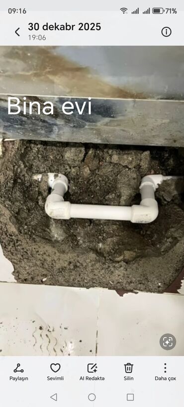 - Su təchizatı və kanalizasiya xətlərinin çəkilməsi, dəyişdirilməsi və təmiri