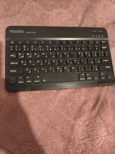 - Klaviatura: Modio Model CB03. Bluetooth bağlantısı, Fn qısa yol düymələri, Android/Windows/iOS üçün kombinasiyalar, Caps/Charge/Power və Connect göstəriciləri. Tamölçülü düymə sırası, Delete, Home, PgUp/PgDn və ox düymələri var.