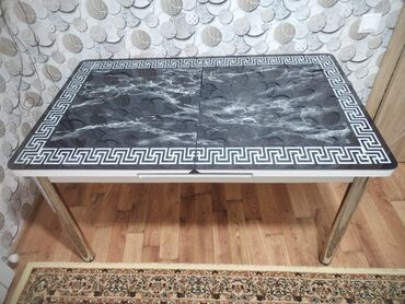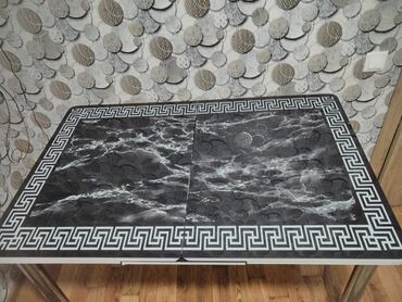 - Dizayn üstünlükləri: modern və eleqant görünüş, tünd mərmər effekti interyerə premium hava qatır; naxışlı haşiyə masaya dekorativ vurğu verir.
