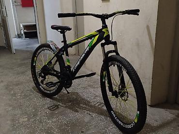 - Təkərlər: 26" (MTB protektorlu şinlər), parlaq yaşıl şpislər; disk tiplı əyləclər üçün uyğun çəngəl