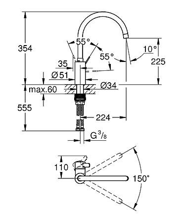 Mətbəx üçün təkqollu qarışdırıcı kran - Material: paslanmayan polad gövdə, pirinç alt bağlantı - Dizayn: U formalı yüksək qollu lülə – dərin lavabolar üçün rahatlıq və geniş hərəkət imkanı - İdarə...