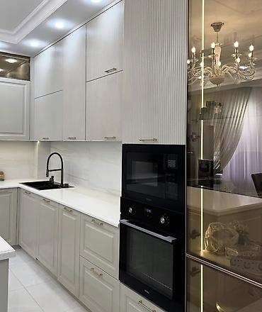 Zərif görünüşü, funksional saxlama həlləri və işıqlı kompozisiyası ilə müasir mənzillər üçün ideal mətbəx komplekti.