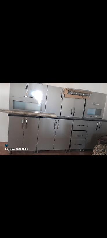 Mətbəx mebeli dəsti - Rəng: boz (mat) fasadlar, xrom rəngli
