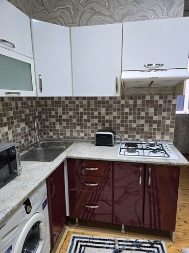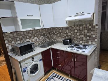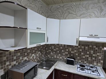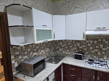 - Yuxarı modul: 4 qapılı şkaf; bir qapı mat şüşə əlavəli, digər qapılar bütöv; aspirator üçün yer ayrılmışdır