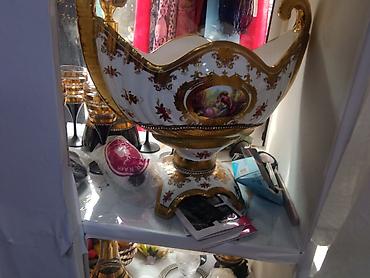 - Dekorativ element: klassik qızılı işləməli, barokko üslubunda iri vazalı mərkəz bəzəyi (şəkildə)
