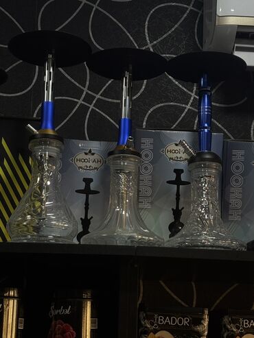 - Müxtəlif dizayn və ölçülərdə nargilə modelləri: şüşə kolbalar (şəffaf və rəngli), metal/gümüşü, qızılı və mat qara gövdələr, dekorativ elementli şaxtalar.