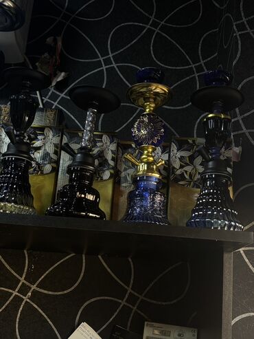 Məhsul: Nargilə və aksesuarları (şəkillərdə müxtəlif modellər) Təsvir: - Müxtəlif dizaynda nargilə modelləri: klassik qara-qızılı, dekorativ qanad formalı elementli, parlaq sarı-şüşə gövdəli və mi...