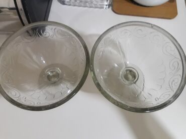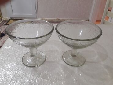 Şirniyyat, dondurma və ya digər desertlərin təqdimatı üçün istifadə olunan, şüşədən hazırlanmış iki ədəd desert qabı. Qabların üzərində zərif naxışlar işlənib ki, bu da onlara klassik və zərif görünüş verir. Şəffaf materialı sayəsində içindəki desertlər gözəl şəkildə görünür. Bu qablar həm gündəlik istifadə, həm də xüsusi tədbirlər üçün uyğundur.