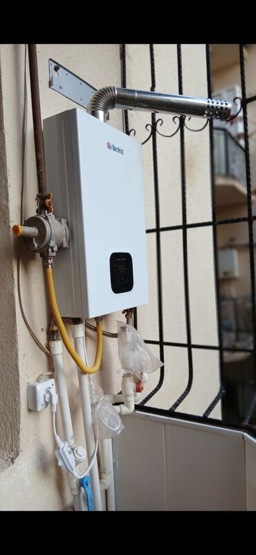 - Qoşulmalar: Soyuq/isti su xətləri, qaz xətti və koaksial baca çıxışı quraşdırılıb.