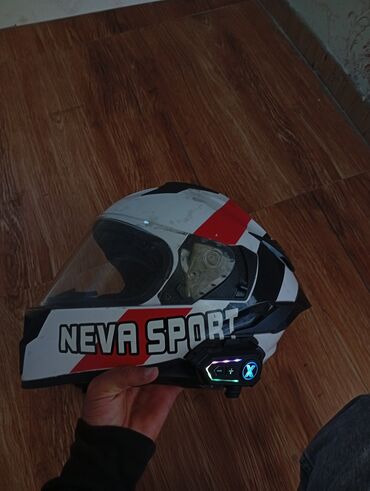 SAFE markalı motosiklet dəbilqəsi - Tip: Tam üzlü (full-face) dəbilqə, yuxarı qalxan şəffaf vizorla - Rəng: Tünd mavi, yan hissədə dekorativ qrafika - Brend loqosu: “SAFE” - Korpus: Sərt xarici qa...
