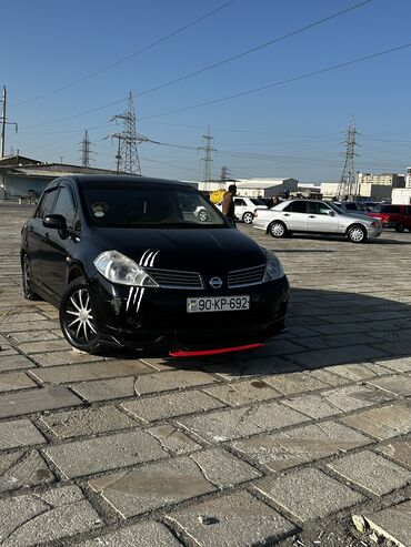 Nissan Tiida sedan – qara rəng, şəhər üçün komfortlu və çevik avtomobil.