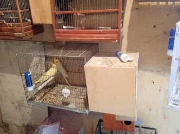 - Metal asma qəfəs (ön tərəfdə su üçün şüşə tipli mavi-ağ içirici, içəridə perch/oturacaq)