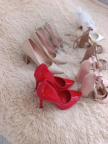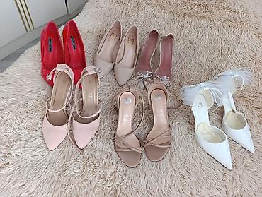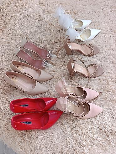 Ayaqqabılar biri 5 Azn dən satılır. Qırmızı təzədir, digərləri sadəcə 1 dəfə geyinilib. Ölçüləri 38