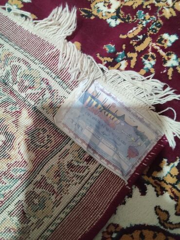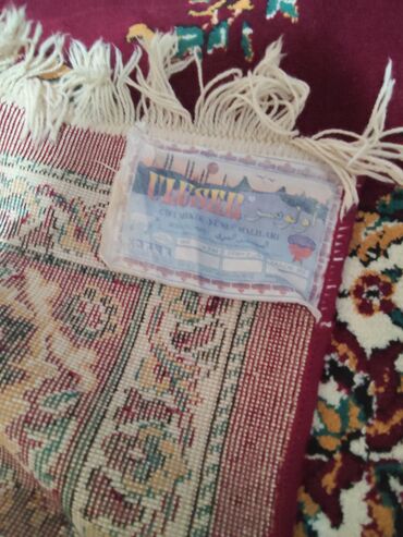 Qırmızı Şərq üslublu xalça - Ölçü: 200 x 300 sm (etiketdə “adi 200x300”) - Tərkib: 80% yun, 20% sintetik lif (etiketdə “ŞERST 80% П/20%”) - İstehsalçı: “Floare” xalça kombinatı, Kişinyov - Burun: ...