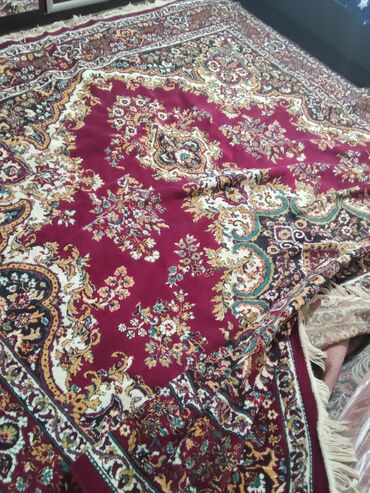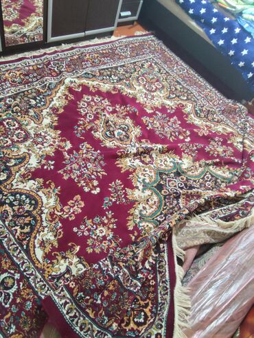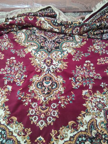 Xalça – uzunluq 2.95eni 2✅ - Rəng: tünd bordo fon, krem və bej haşiyələr, qara və qızılı tonlarda işləmələr - Dizayn: mərkəzdə medalyon, ətrafında floral və arabesk ornamentlər, geniş dekorativ ha...