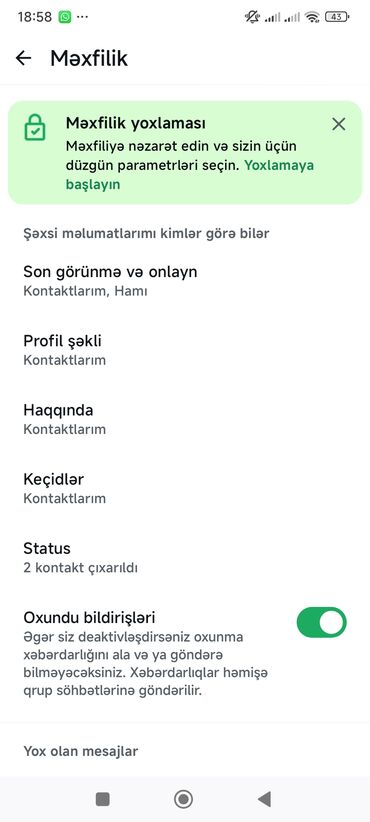 Mesajların 100%-nə cavab verir Adətən 2 dəqiqə ərzində