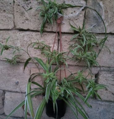 - Chlorophytum (hörümçək bitkisi) – asma qara dibçəkdə, uzun saxsa bənzər zolaqlı yarpaqlar və çoxlu yan pöhrələr verir. Asma konstruksiyası ilə birlikdə dekorativdir, balkona və ya pəncərə önünə uyğundur. Havani təmizləməsi və asan çoxalması ilə tanınır.