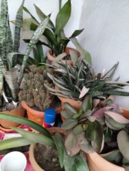 - Kaktuslar: Şəkillərdə gördüyünüz iri kol şəklində böyüyən kaktus və çoxsaylı balaca top formalı kaktus sortları. Günəşli pəncərə önünü sevir, az suvarma ilə kifayətlənir. İsti və quru mühitə uyğun, torpağın tam qurumasından sonra su verilməsi tövsiyə olunur. Dekorativ gil saksılarda.
