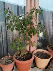 - Bəzək bibəri (Capsicum): Qırmızı meyvəli, kompakt kol formasında. İşıqlı yeri sevir, torpaq yüngül nəm saxlanmalıdır. Balkon və pəncərə önü üçün dekorativdir.