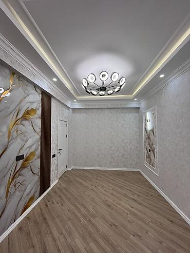 - Tavan və karnizlər: Ağ rəngli, relyefli karnizlər, səliqəli gizli işıq kanalları.
