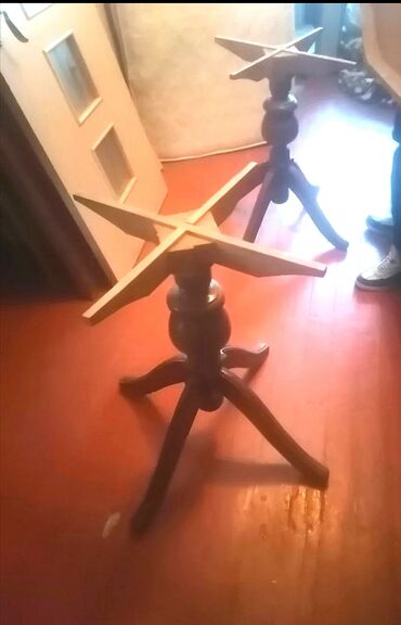 - Forma: oval 2 ədəd dekorativ taxta sütun ayaq, hər sütunda 3 budaqvari dayaq – sabit və möhkəm quruluş.