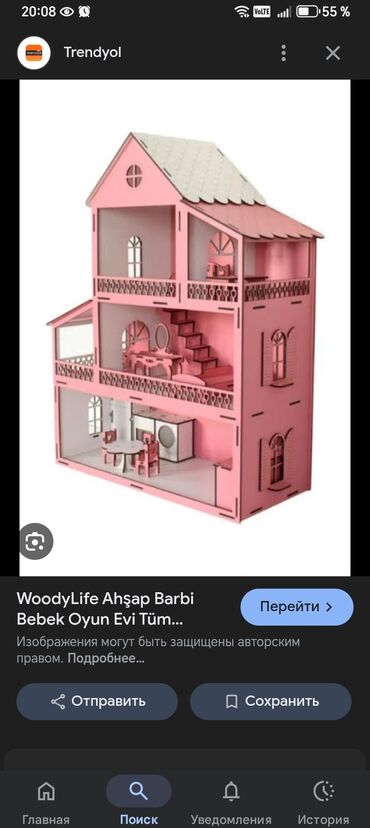 Gozel hediyyelik böyük evcik. Materialı taxtadır. İçindəki mebelləridə taxtadandır. Ecoloji təmiz. Plastmas içindəkilər əlavə qoyulub. Hündürlük təxmini 1.50 sm. Təzədir. İşlədilməyib. Alınandan üs...