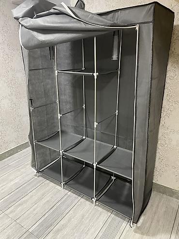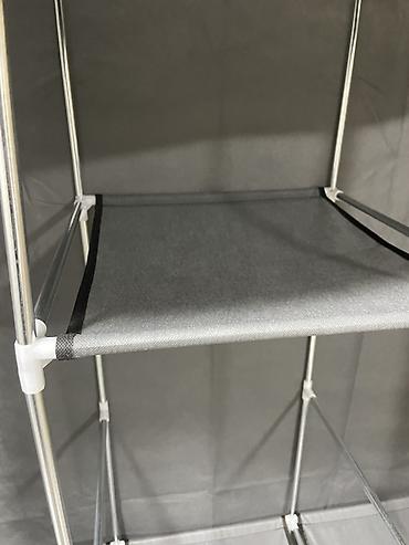Məhsul: Ev üçün təşkilatçı və rəf sistemləri dəsti 1) Parça qapılı geyim dolabı – Model 88130 - Geniş saxlama həcmi: 3 asılqan bölməsi, ortada çoxsaylı rəflər - Parça qapaqlar rulon şəklində yuxar...