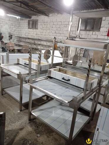Paslanmayan poladdan hazırlanan peşəkar dönər/balıq/kabab vitrini və servis masası komplekti.