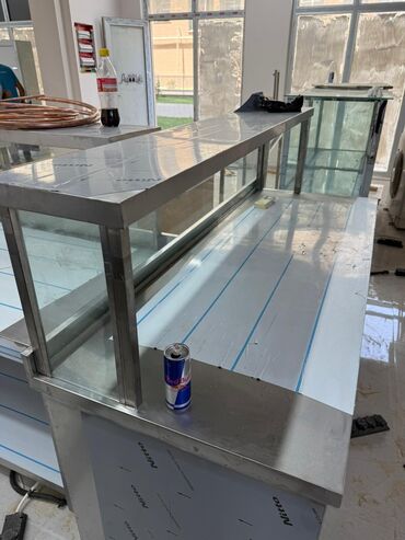 Paslanmayan poladdan hazırlanmış peşəkar iş masaları - Material: AISI paslanmayan polad, qida təhlükəsiz səth - Korpus: möhkəm metal çərçivə, qaynaq/birləşmə yerləri gücləndirilmiş - Səth: hamar, ...