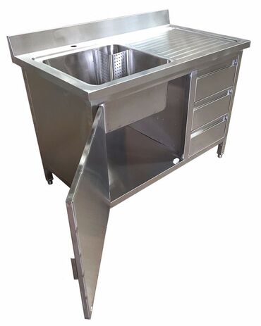- Dərin lavabo bloku: iri həcmli vanna, süzgəcli iç səbət, sağda qabqacaq quruducu-süzdürmə sahəsi. Aşağıda geniş saxlanma bölməsi.