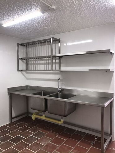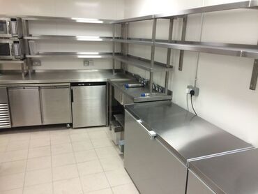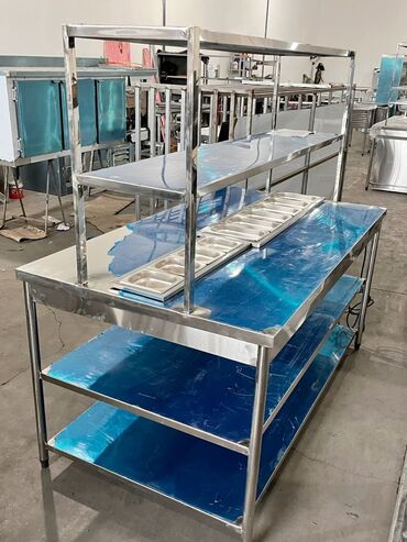 - 304 paslanmayan poladdan iş masaları: sanitar tələblərə uyğun, yüksək davamlılıq, asan təmizlənmə. Künc və düz modellər, yüksək bortlu səthlər.