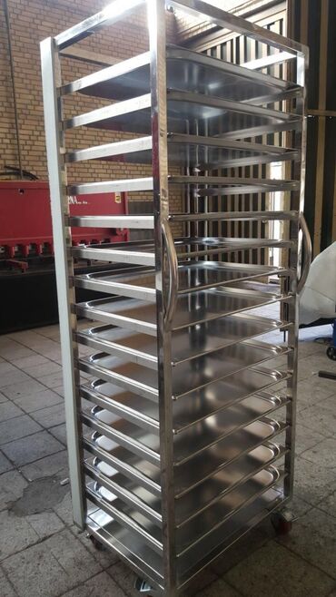 Pas dəyirmanları, restoran və çörəxanalar üçün paslanmayan poladdan hazırlanan peşəkar rəf və furaj arabaları.