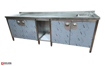 Paslanmayan poladdan peşəkar mətbəx masaları və iş stansiyaları - Material: AISI paslanmayan polad, gigiyenik və asan təmizlənən səth - Modellər: açıq rəfli masa, siyirməli masa, sürüşkən qapılı d...