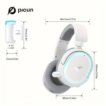 - Ölçülər: qulaq kasa diametri təxmini 100 mm (3.93 in), en 88 mm (3.46 in); taç uzunluğu təxmini 184.7 mm (7.27 in). USB qəbuledici: 57 mm x 22 mm (2.4 in x 0.8 in)