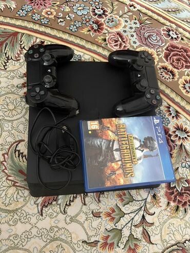Sony PlayStation 4 (PS4) Slim oyun konsolu seti.Yenidən fərqlənmir,istifadə edilmədiyi üçün satilir Komplekt: - PS4 Slim konsolu (qara rəng) - 2 ədəd orijinal DualShock 4 pultu: qırmızı və mavi - ...