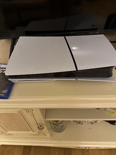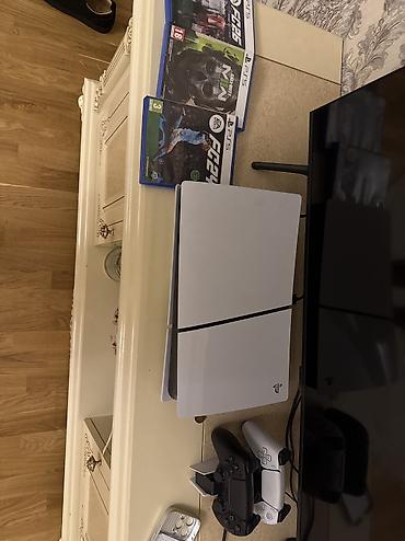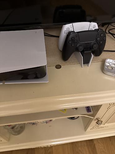 - PlayStation 5 konsolu (ağ/qara korpus, üfüqi quraşdırılıb)
