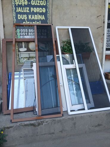 - PVC və alüminium pəncərə-qapı çərçivələri: Fərqli ölçü və rənglərdə nümunələr. Sürüşmə və klassik açılan sistemlərə uyğun tor və aksesuarlarla komplektləşdirilə bilər.