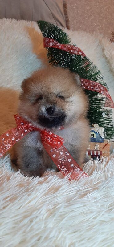 Pomeranian (Spits) mini tecili satilir baxa bilmediyimcun. agilli oynagan terbiyeli. tualet terbiyesi var. butun peyvendleri olunub. saglam.real alici narahat etsin. bow bow yazib narahat etmeyin