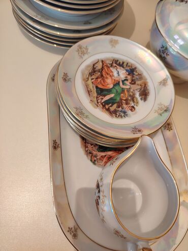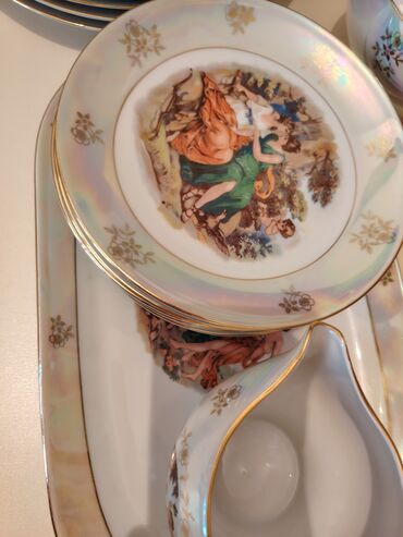 Madonna Porseleyn yemək dəsti – klassik “sevgililər” süjeti və qızılı naxışlarla