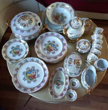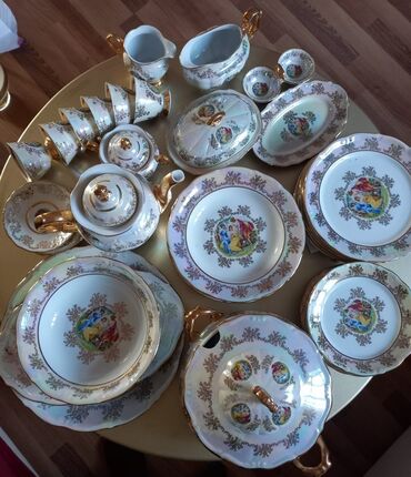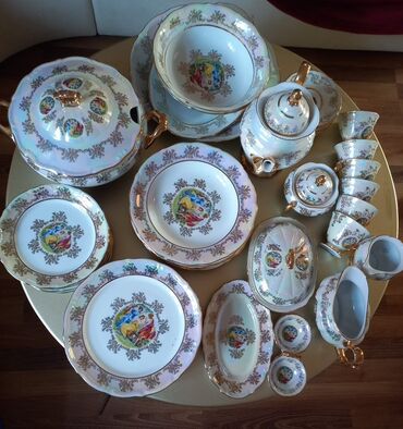 Klassik üslubda, incə naxışlı komplekt porselen süfrə-servis dəsti.