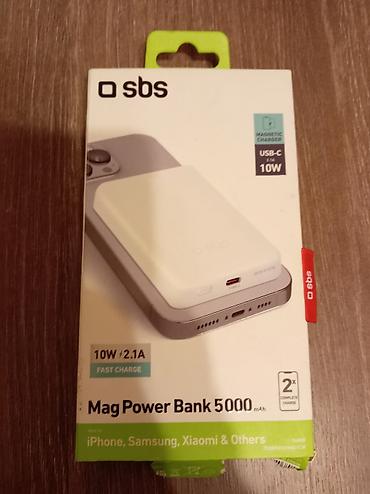 Qutudakı məlumatlara əsasən model: Mag Power Bank 5000 (SBS). Maqnitli simsiz istifadəyə uyğun dizayn və USB‑C ilə sürətli enerji ötürməsi.
