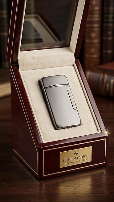 - Hədiyyə təqdimatı: içi məxmərə bənzər yumşaq astarlı, şüşə qapaqlı taxta vitrində gəlir; ön paneldə “Premium Edition – Titanium Grey Finish” lövhəsi